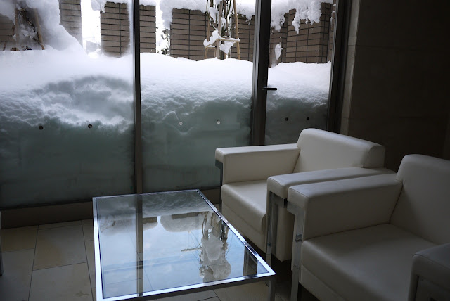 | ロビーの雪も1mぐらいか?溶けた分もいれると2m近くは降ったようです. |